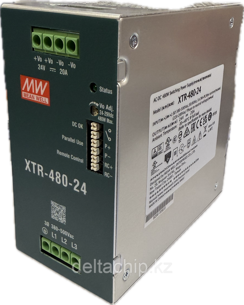 XTR-480-24 — это трехфазный источник питания MEAN WELL мощностью 480 Вт с выходом 24 В, предназначенный для монтажа на DIN-рейку. Он разработан для промышленных применений, включая морские и взрывоопасные зоны, и отличается высокой надежностью, эффективностью и компактностью.