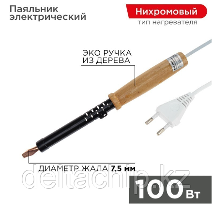 Паяльник с деревянной ручкой серии ЭПСН мощностью 100 Вт REXANT предназначен для ручного монтажа/демонтажа деталей среднего и крупного размера, а также для лужения. Подходит как для любительского, так и для профессионального использования.